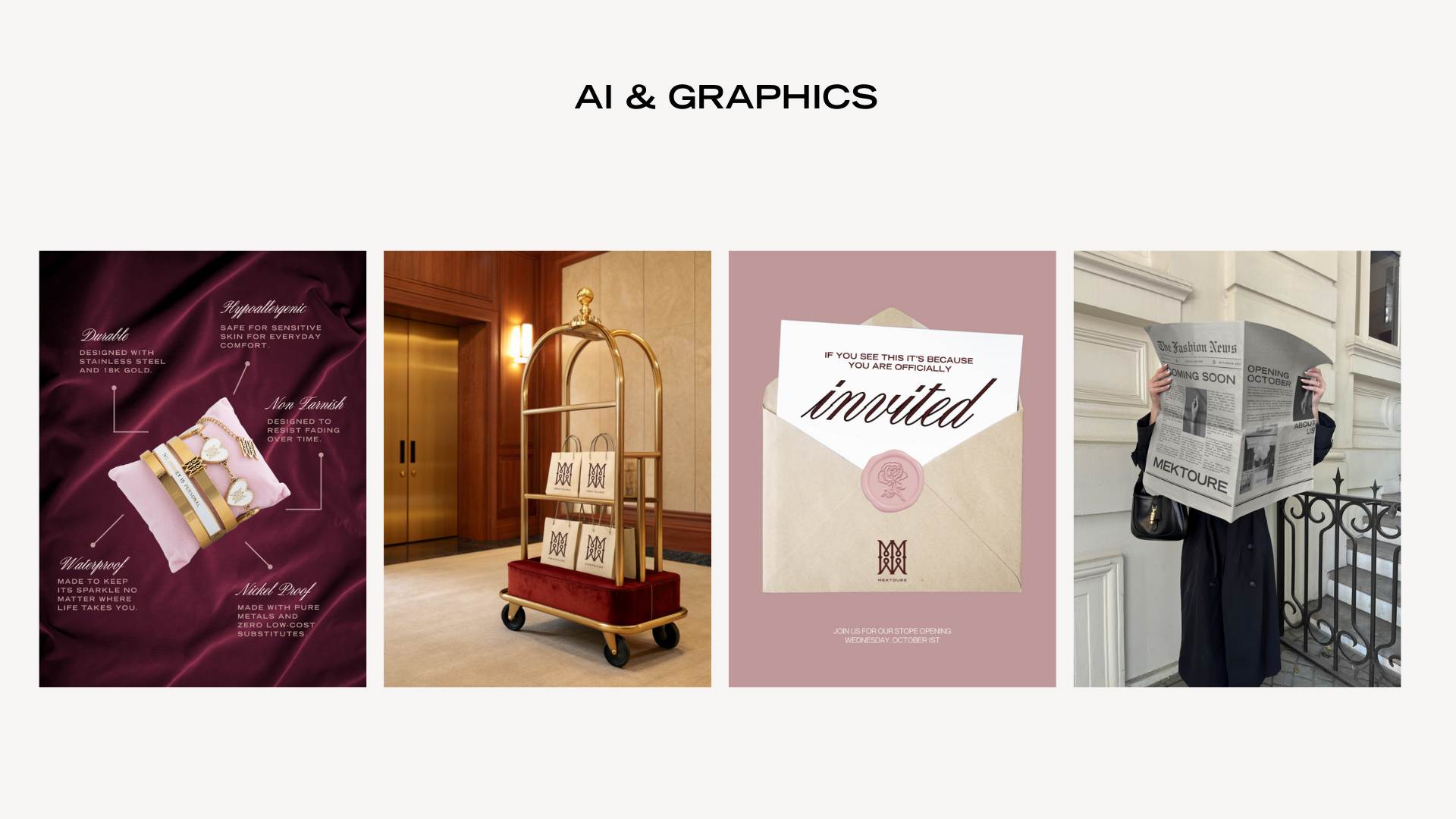 Mektoure set out to launch as a high-luxury jewelry brand, but the founder didn’t just want another fine jewelry identity. The vision was to evoke the feeling of walking into a world-class hotel where every detail reflects refinement. The challenge was to translate that sensory, immersive experience into a digital brand identity that felt elevated, editorial, and timeless.